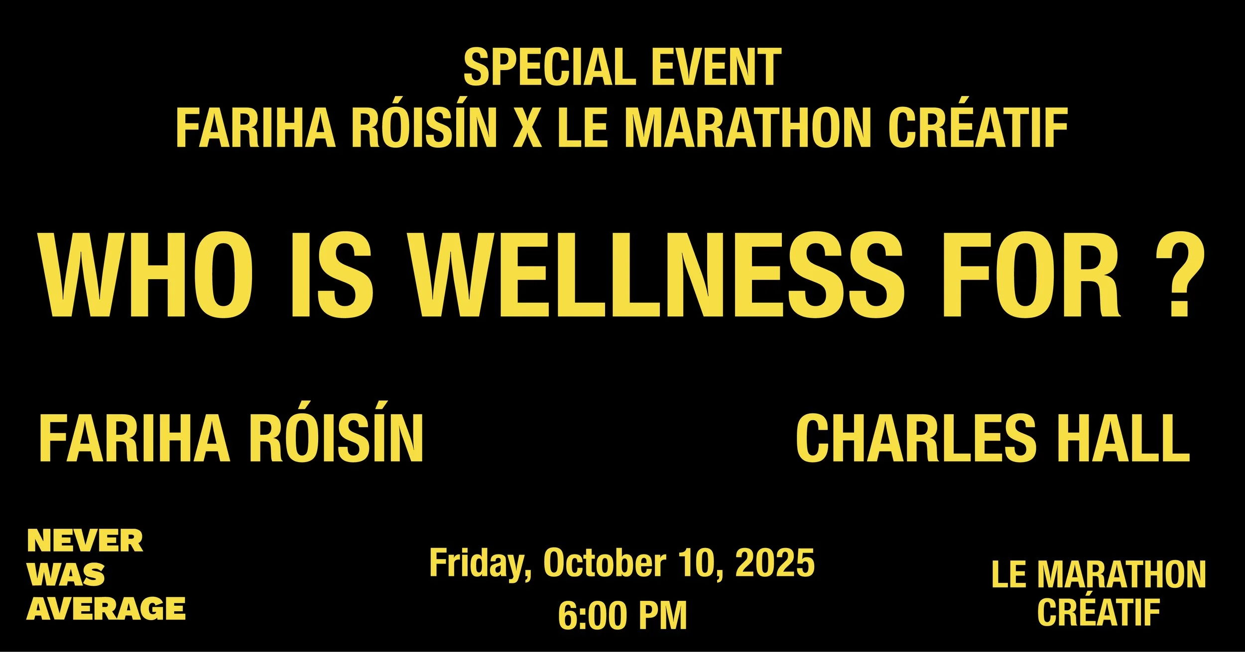 Rooted in Fariha’s acclaimed book Who Is Wellness For?, this gathering invites an open, unfiltered conversation about what it truly means as a creative today to dream, travel, and create. The discussion will be moderated by Charles Hall and explores the values that shape everything we do at Le Marathon Créatif.